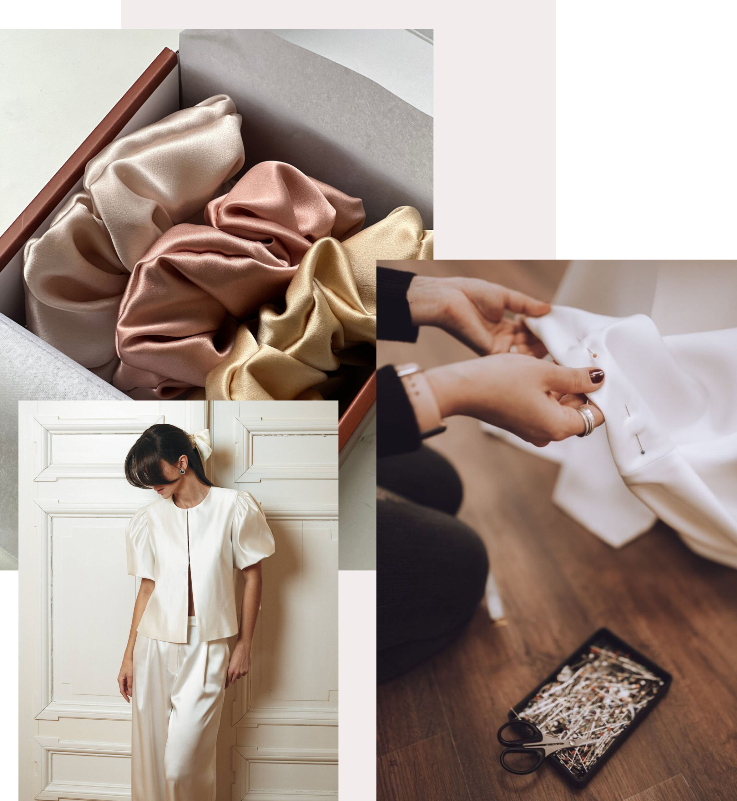 We follow the principle of upcycling — 98% of the silk leftover from our production process gets a second life. Fabric remnants are transformed into smaller accessories, ensuring that almost nothing goes to waste.