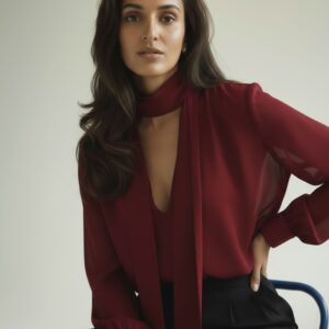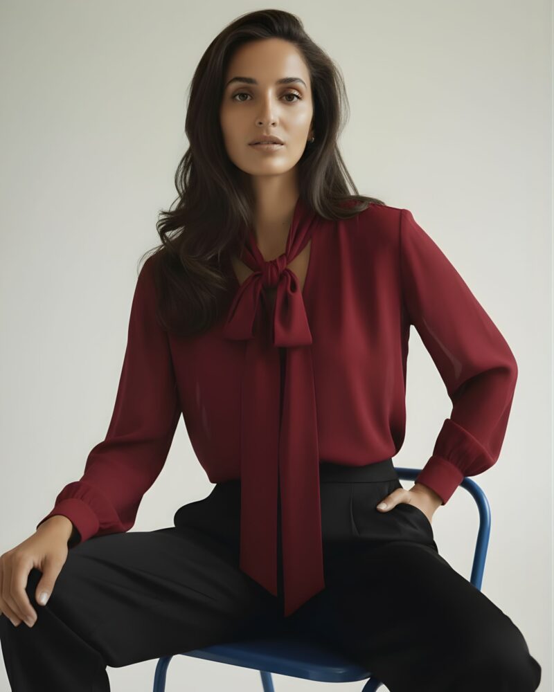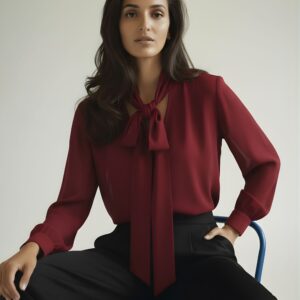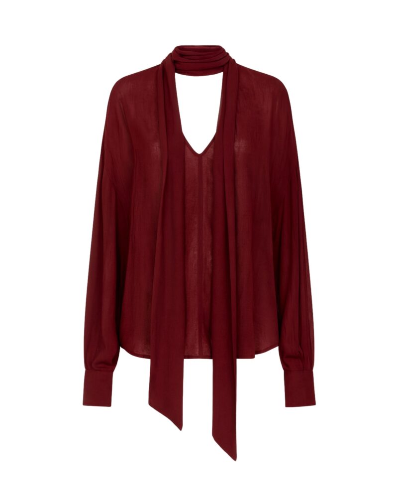 Bluzka z jedwabnej krepy z szarfą – Estelle – burgundy