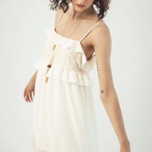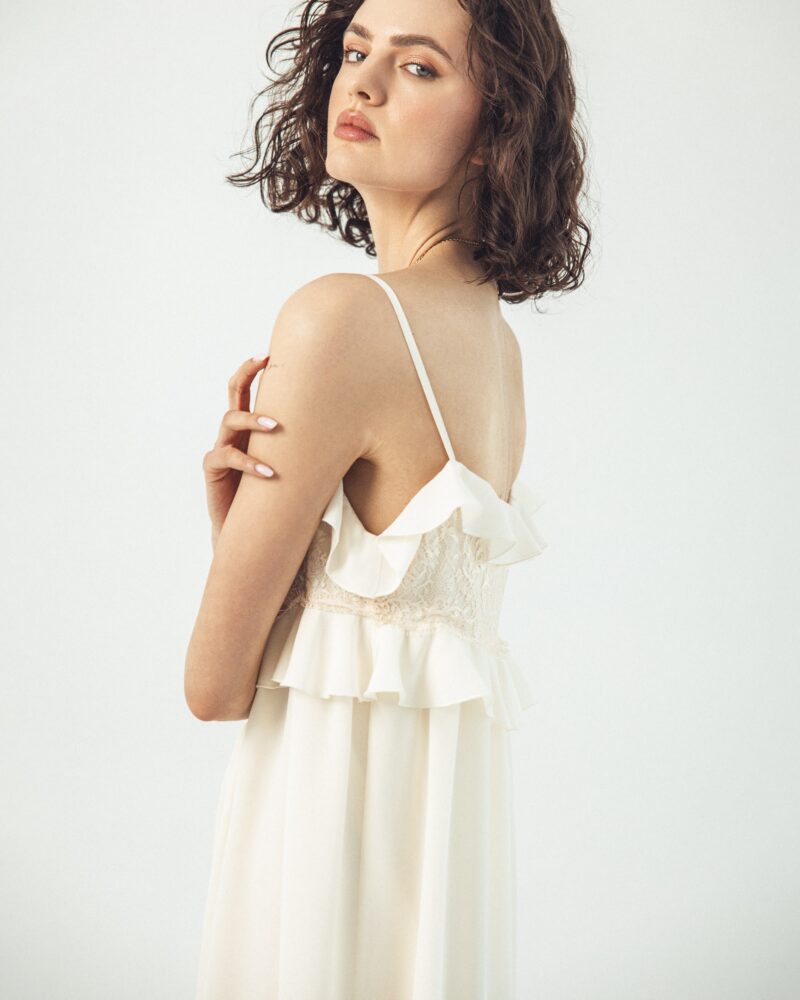 Czy istnieje sukienka, która pasuje do każdej okazji? Nasza sukienka Verona z pewnością to potwierdzi! Uszyta w 100% z jedwabiu, zachwyca prostotą i detalami jednocześnie. Ma cienkie ramiączka, falbanki i koronkowe wstawki, które nadają jej nieoczywistego uroku. Jej kolor? Uniwersalny – doskonale współgra ze złotą opalenizną, skórzanymi kowbojkami, eleganckimi szpilkami i lekkimi klapkami. Rano na kawę, po południu na plażę, wieczorem na kolację – za każdym razem wygląda inaczej, ale zawsze tak samo dobrze.