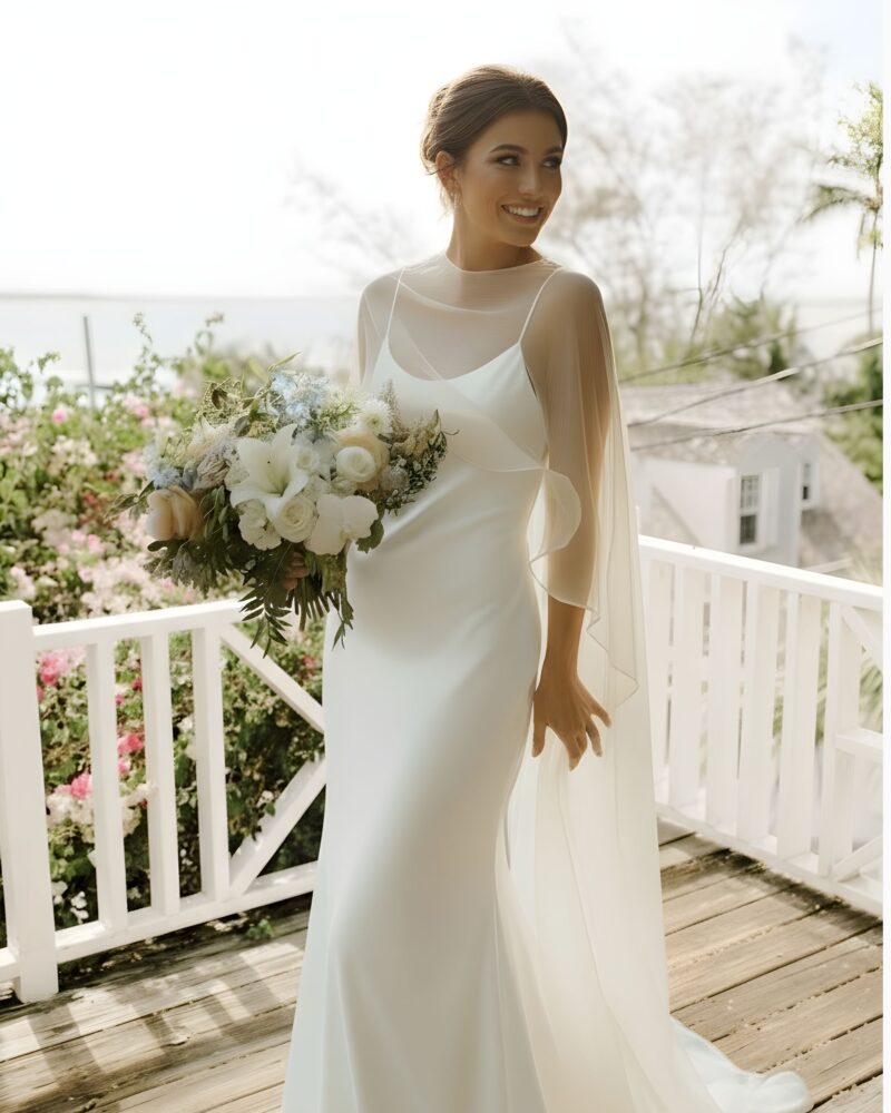 Idealnie komponuje się z naszymi bieliźnianymi sukienkami Grace i Vivienne, podkreślając ich kobiecy charakter, a jednocześnie może służyć jako elegancka narzutka na suknię ślubną, dodając wyjątkowego wyrafinowania i finezji.