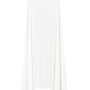 Ta eteryczna narzutka-peleryna z najwyższej jakości jedwabnej żorżety to kwintesencja lekkości i elegancji. Delikatnie opadające, szerokie rękawy oraz subtelne marszczenia dodają sylwetce lekkości, tworząc romantyczny, zwiewny efekt.