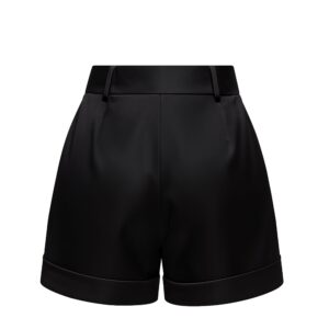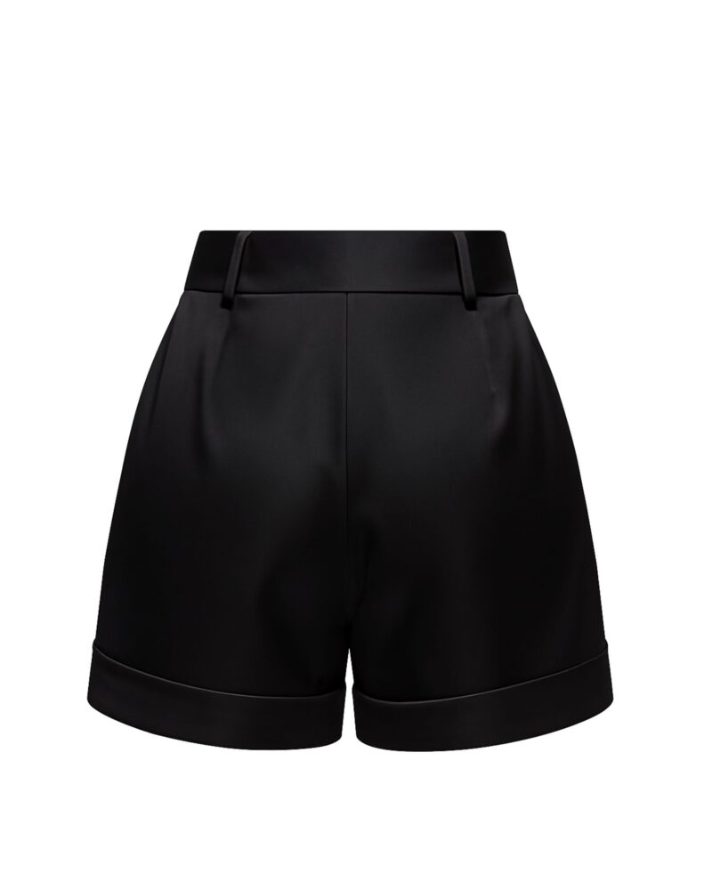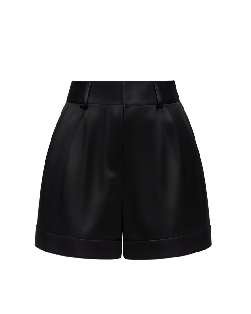 Eleganckie jedwabne szorty zostały uszyte z wysokiej jakości jedwabiu o gramaturze 30 momme i satynowym wykończeniu, dzięki czemu gwarantują lekkość i swobodę ruchów, jednocześnie podkreślając naturalne proporcje sylwetki. Osadzone na grubym pasku ze szlufkami, zapewniają idealne dopasowanie w talii oraz wygodę noszenia przez cały dzień, niezależnie od okazji. Podwyższony stan dodatkowo podkreśla talię, a szerokie nogawki nie tylko pięknie układają się w ruchu, ale także optycznie wysmuklają nogi, nadając sylwetce lekkości i harmonii.