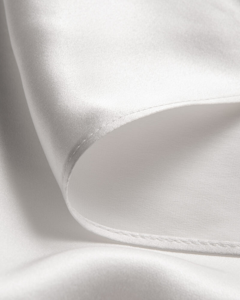Skład: 100% naturalny jedwab o splocie atłasowym (prawa strona błyszcząca, lewa matowa)