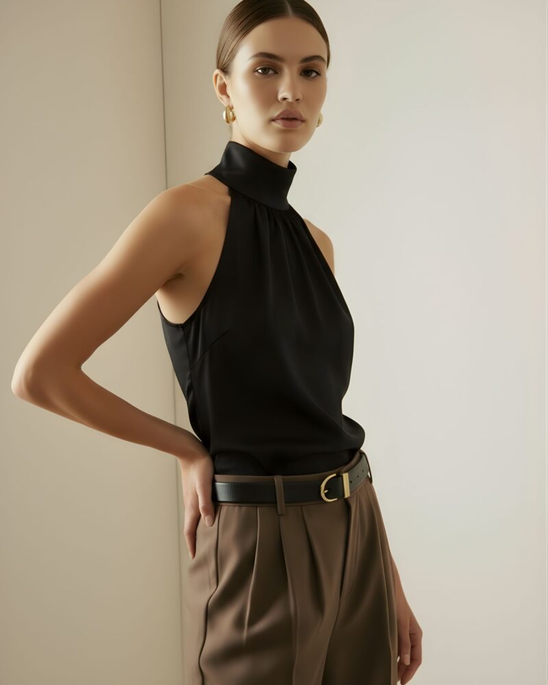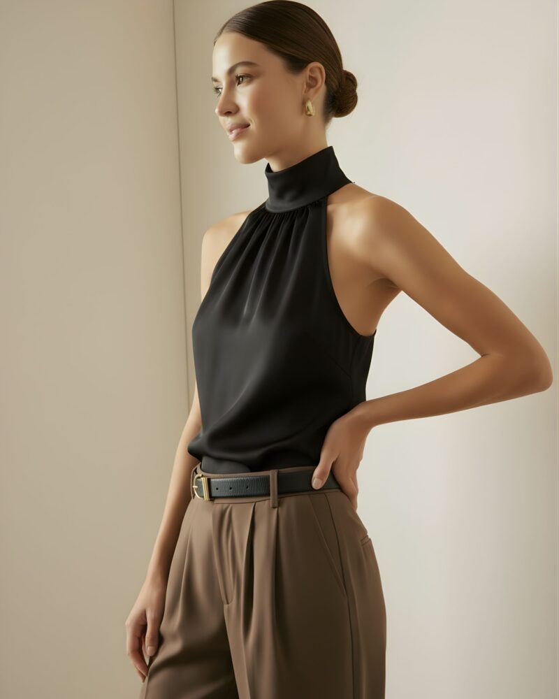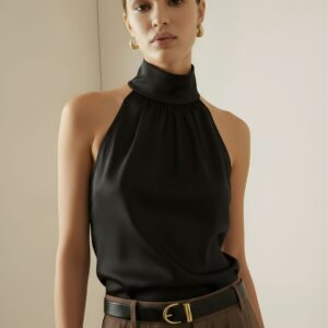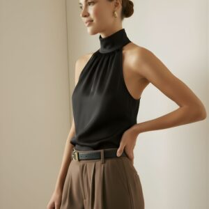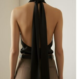 Styl: Klasyczny, z nowoczesnym akcentem – wiązanie z tyłu, które dodaje bluzce subtelnej zmysłowości