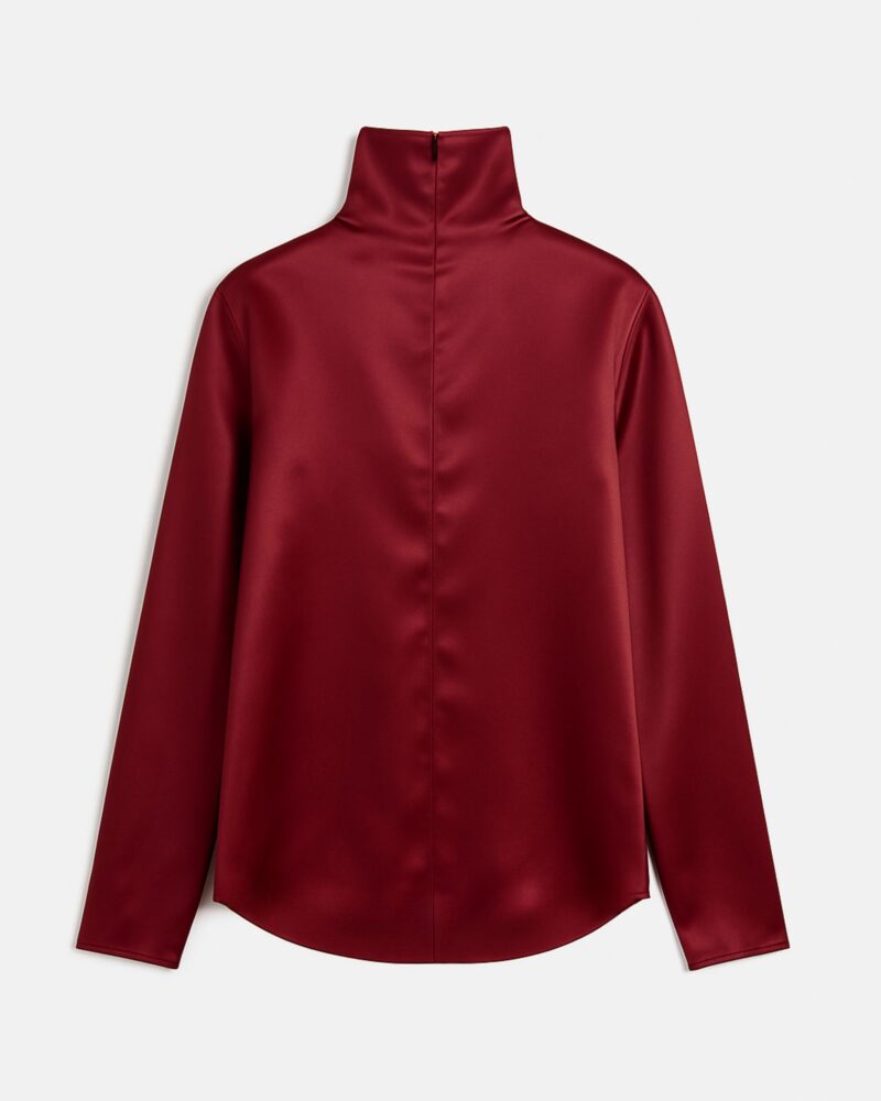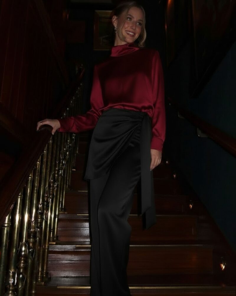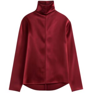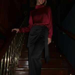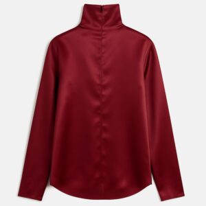 Ta elegancka jedwabna bluzka, to klasyczny wybór na specjalne okazje. Wykonana z jedwabnej satyny, charakteryzuje się subtelnym połyskiem, który podkreśla jej luksusowy charakter. Bluzka ma prosty, ale wyrafinowany krój z długimi rękawami i stójką, co dodaje jej nowoczesnego, a zarazem eleganckiego wyglądu. Zamek na plecach ułatwia zakładanie, a minimalistyczny fason sprawia, że jest niezwykle uniwersalna – doskonała do stylizacji na wieczór czy eleganckie spotkanie. To ponadczasowa propozycja, która doskonale komponuje się zarówno z formalnymi spodniami, jak i spódnicami, zapewniając wygodę i szyk w jednym.