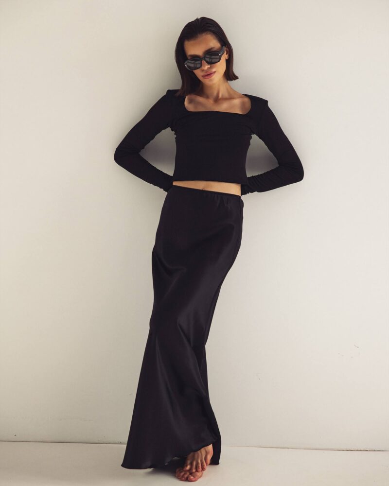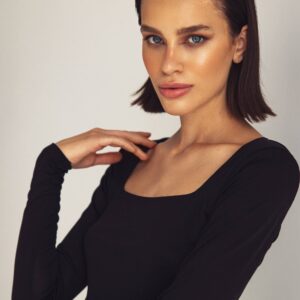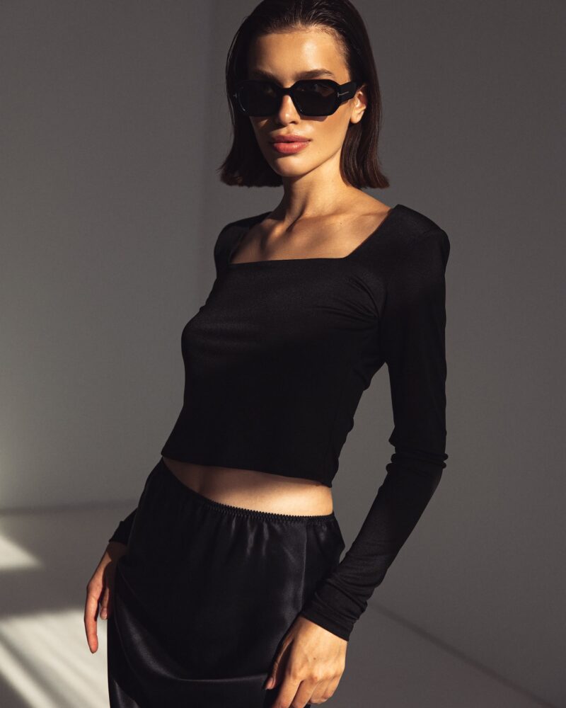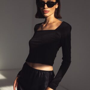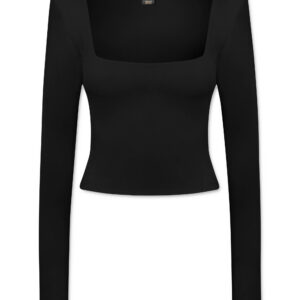 Jedwabna, dzianinowa bluzka z kwadratowym dekoltem – czarna