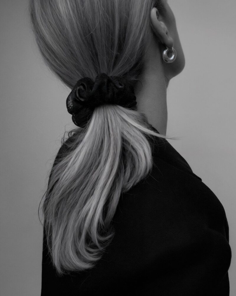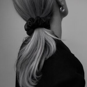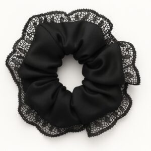 Jedwabna gumka do włosów z koronką – czarna