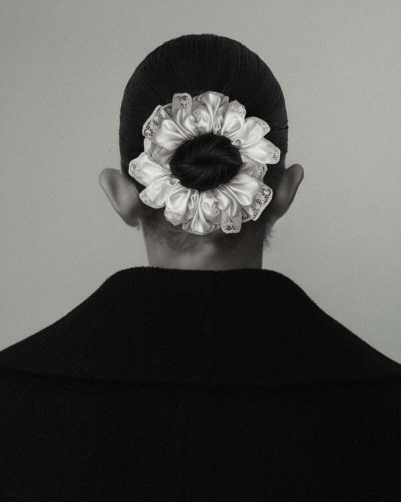 Elegancja i delikatność w jednym dodatku. Ta jedwabna gumka do włosów została ozdobiona subtelną, ażurową koronką, która dodaje jej wyjątkowego charakteru. Wykonana z miękkiego, gładkiego jedwabiu, nie niszczy i nie łamie włosów, a przy tym pięknie prezentuje się zarówno w codziennych, jak i wieczorowych stylizacjach