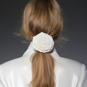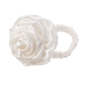Jedwabna gumka do włosów w formie przepięknej i bardzo efektownej róży. Ręcznie wykonana z najwyższej jakości jedwabiu naturalnego z certyfikatem OEKO-TEX. Uzupełni każdy outfit dodając mu modowego charakteru.