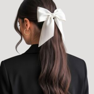 Jedwabna kokardka do włosów doda dziewczęcego sznytu każdej, nawet najbardziej klasycznej stylizacji. Dzięki jedwabnej gumce, kokarda utrzyma się na każdym typie i każdej gęstości włosa.