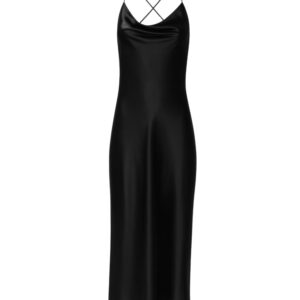 Delikatnie lejący dekolt subtelnie podkreśla szyję oraz ramiona, dodając sylwetce lekkości i klasy. Identyczne wykończenie z tyłu nadaje sukience zmysłowego charakteru, a wiązanie na plecach nie tylko zapewnia idealne dopasowanie, ale także pozwala na personalizację stylizacji – możesz zawiązać je w zaprezentowane przez nas sposoby, lub znaleźć własny, unikalny wariant.