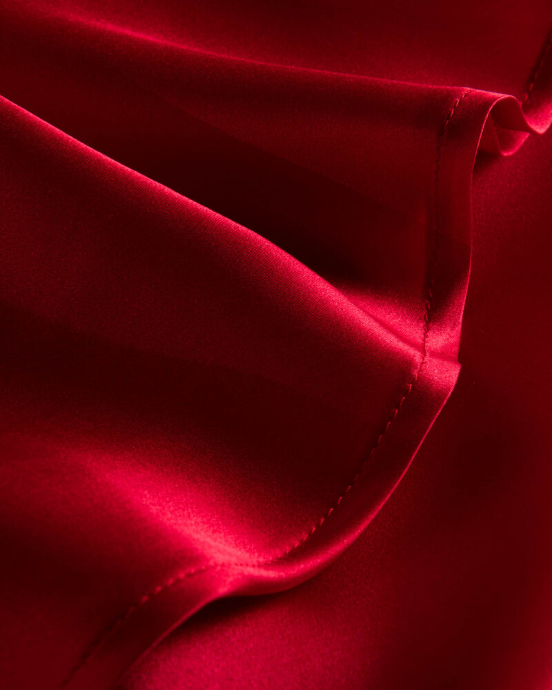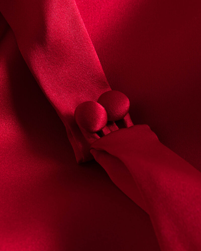 Wykonana z najwyższej jakości jedwabiu, sukienka jest miękka w dotyku i delikatna dla skóry. Jej lekkość sprawia, że jest idealna na każdą porę roku, a subtelny połysk materiału dodaje całości elegancji i klasy.