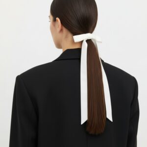 Jedwabna wstążka w formie małej kokardki do włosów, doda dziewczęcego sznytu każdej, nawet najbardziej klasycznej stylizacji.
