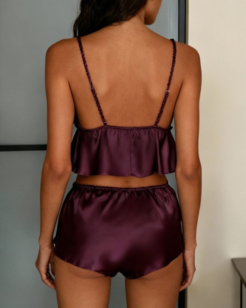 Dobierz do niego nasz jedwabny top w stylu bieliźnianym i stwórz idealny komplet do spania.