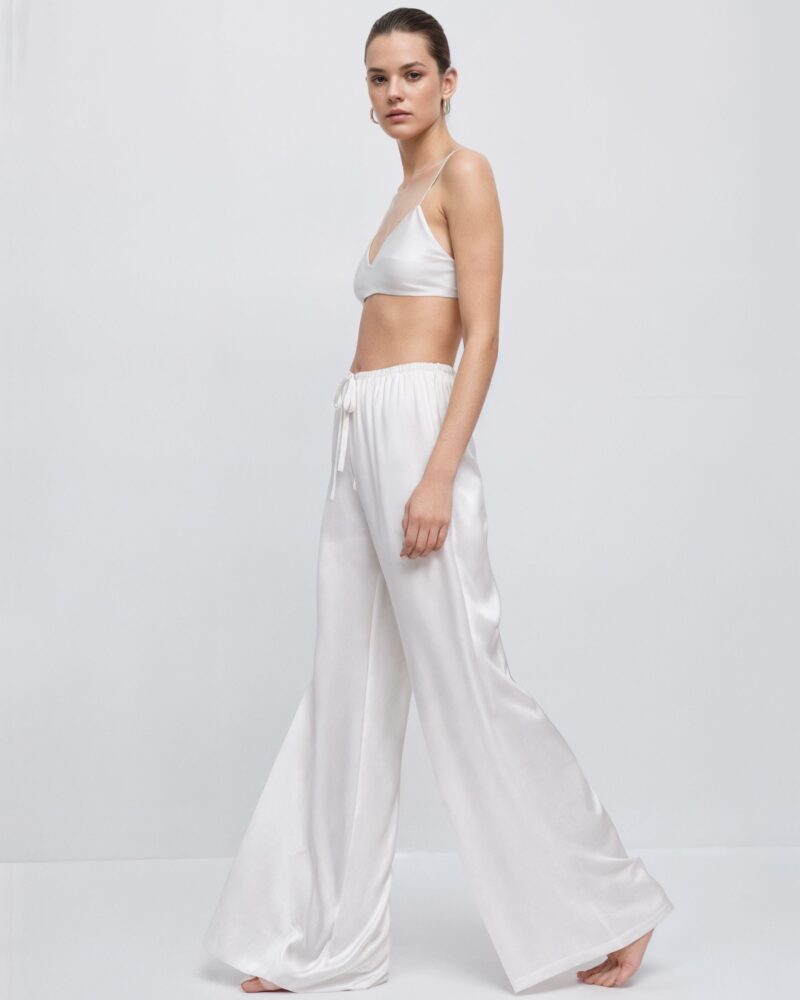 Ten elegancki stanik wykonany jest z delikatnej, jedwabnej satyny, która zapewnia wyjątkowy komfort noszenia i subtelną, luksusową teksturę. Z wąskimi ramiączkami i prostym, minimalistycznym krojem, stanik doskonale dopasowuje się do ciała, podkreślając naturalną linię dekoltu. Głęboki odcień bordo nadaje mu klasy i wyrafinowania. Wszyte gumki, zapewniają lepsze dopasowanie i komfort noszenia. Staranne wykończenie oraz perfekcyjne szwy gwarantują trwałość, czyniąc go idealnym wyborem na co dzień oraz specjalne okazje.