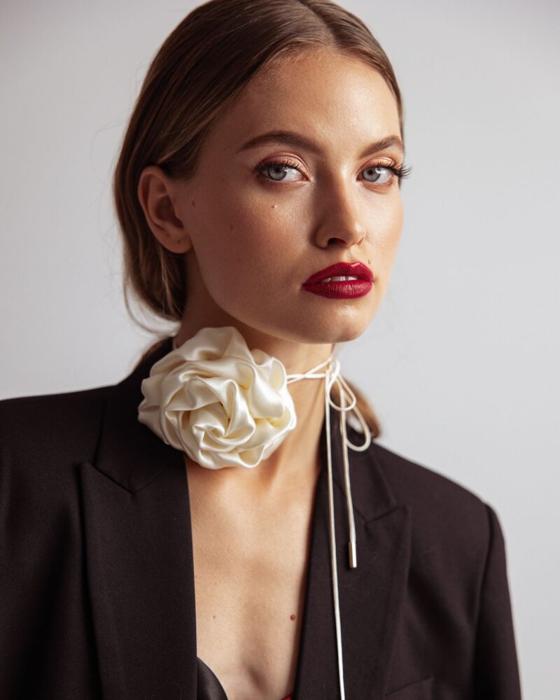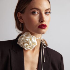Jedwabny chocker z różą – cream