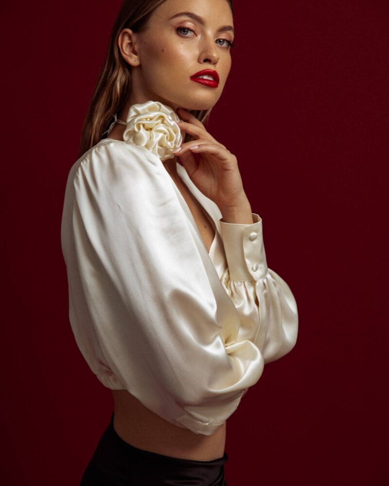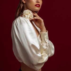 Niezwykle modny dodatek na szyję- choker w formie przepięknej i bardzo efektownej róży. Ręcznie wykonany z najwyższej jakości jedwabiu morwowego. Uzupełni każdy outfit dodając mu modowego charakteru.