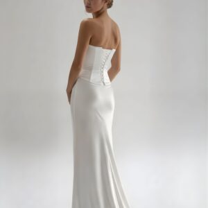 Świetnie komponuje się z jedwabnymi spódnicami, garniturem lub spodniami z wysokim stanem. To idealny wybór dla Panien Młodych szukających minimalistycznej, ponadczasowej elegancji.