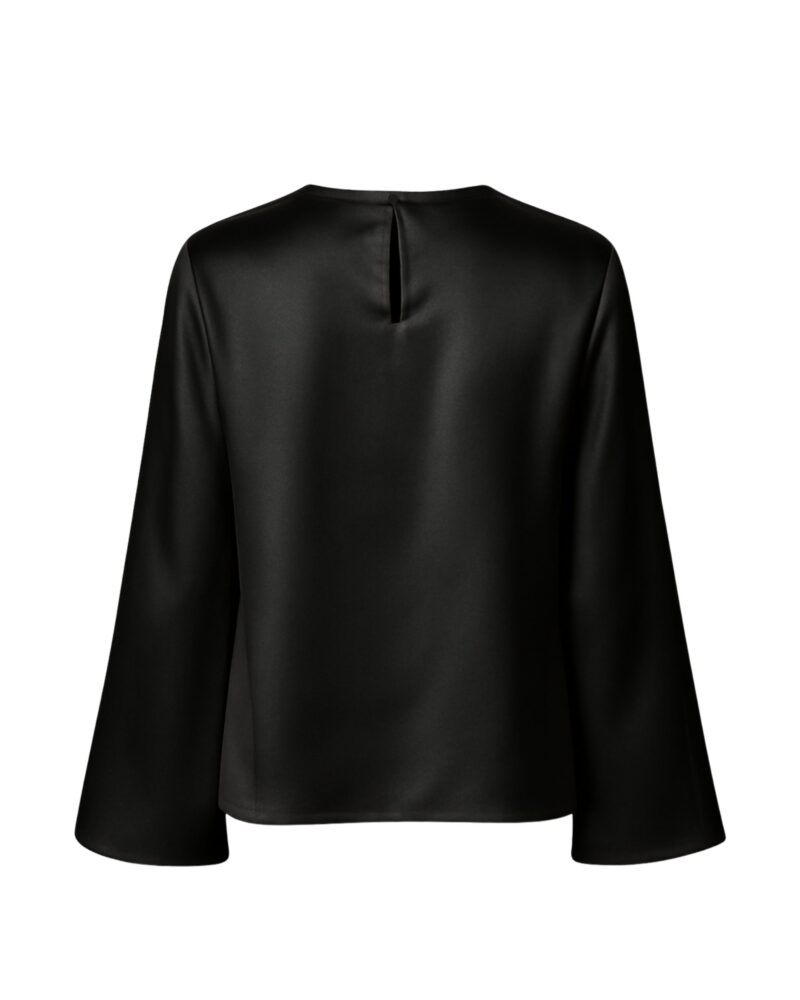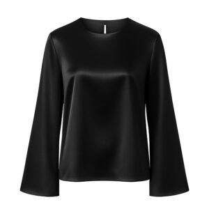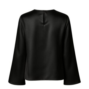 Niezwykle miękka, lekko połyskująca bluzka uszyta w 100% z najwyższej jakości jedwabnej satyny. Luźny, pudełkowy fason subtelnie opływa sylwetkę, a szerokie rękawy dodają nowoczesnej lekkości. Z tyłu delikatne rozcięcie z pętelką i drobniutkim, guziczkiem ułatwia zakładanie, pozostając przy tym dyskretnym detalem.