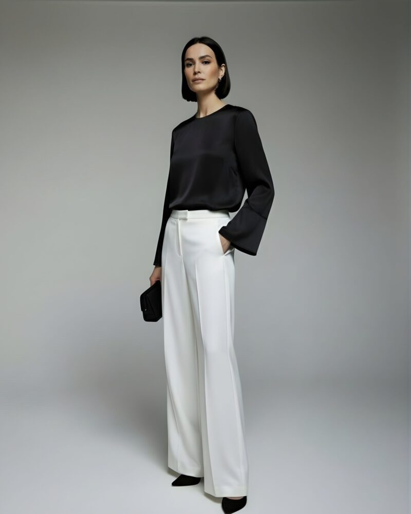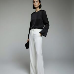 Dodaj do swojej garderoby ponadczasowy model, który łączy luksus jedwabiu z minimalistyczną formą – idealny zarówno do biura, jak i na wyjątkowe wyjścia.