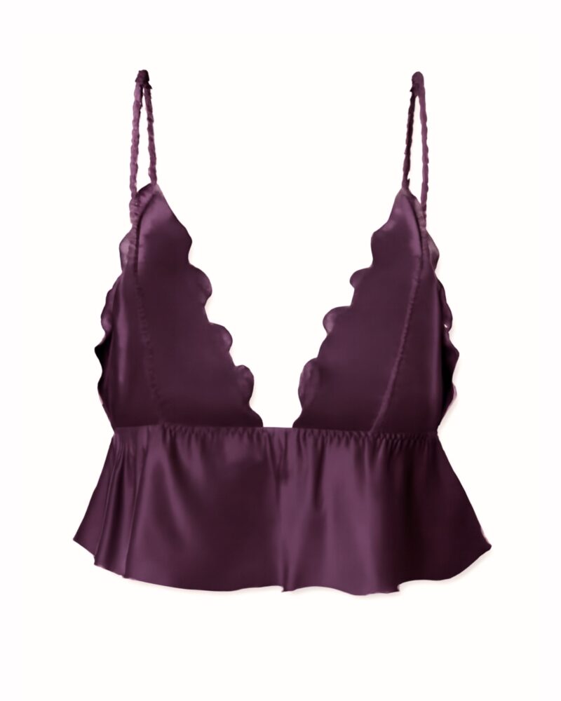 Jedwabny stanik bralette, uszyty z miękkiego i przyjemnego dla ciała jedwabiu o satynowym wykończeniu.