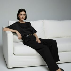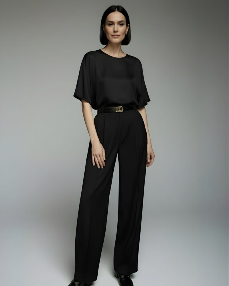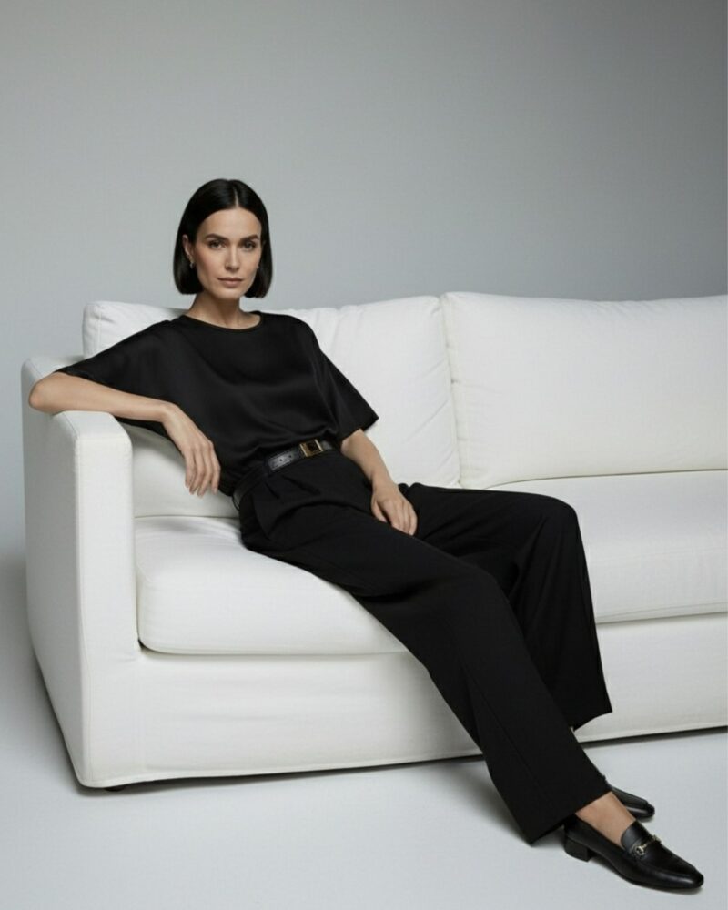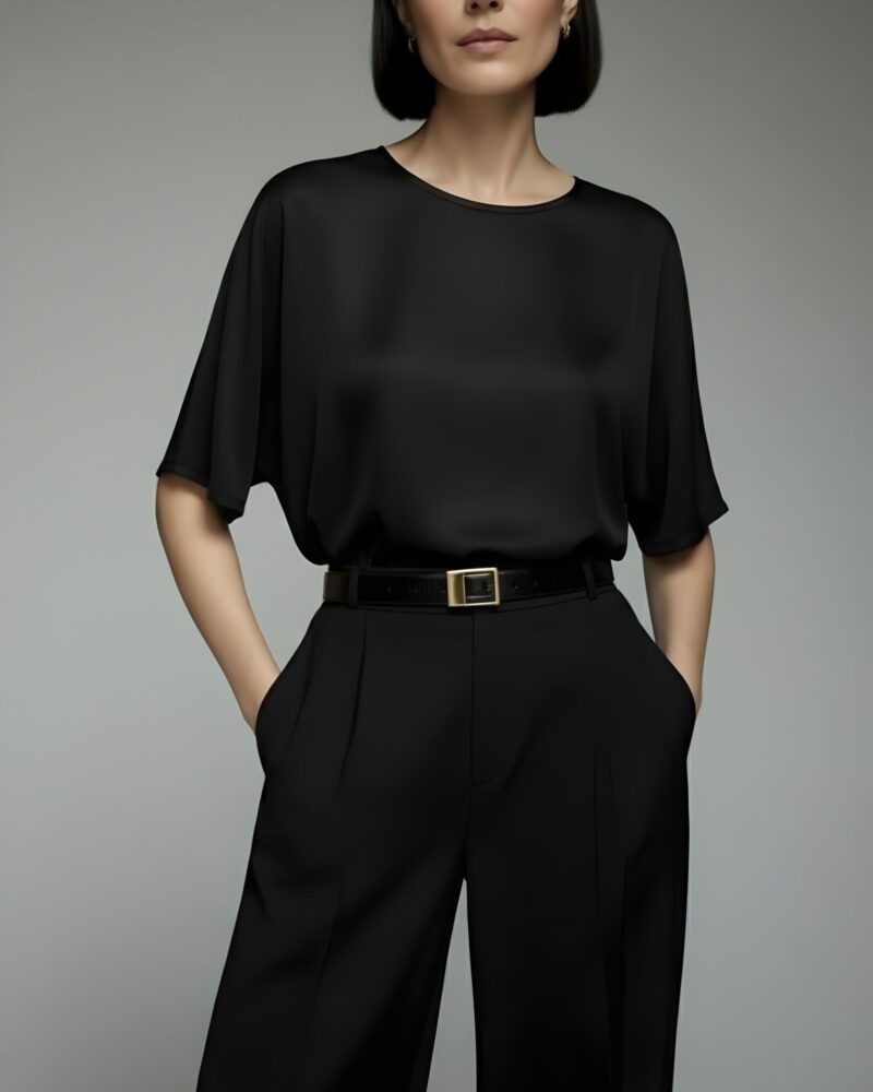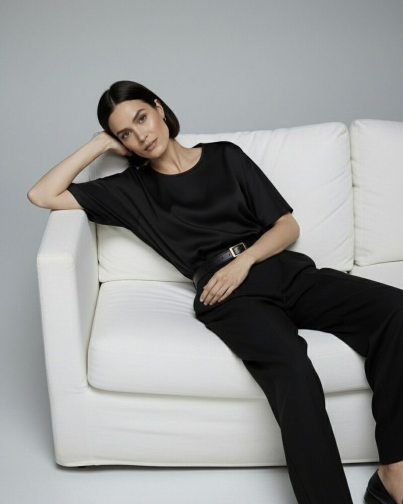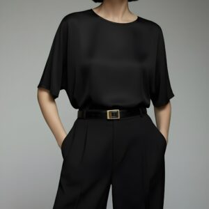 Dodaj do swojej garderoby ponadczasowy model, który łączy luksus jedwabiu z minimalistyczną formą – idealny zarówno do biura, jak i na wyjątkowe wyjścia.