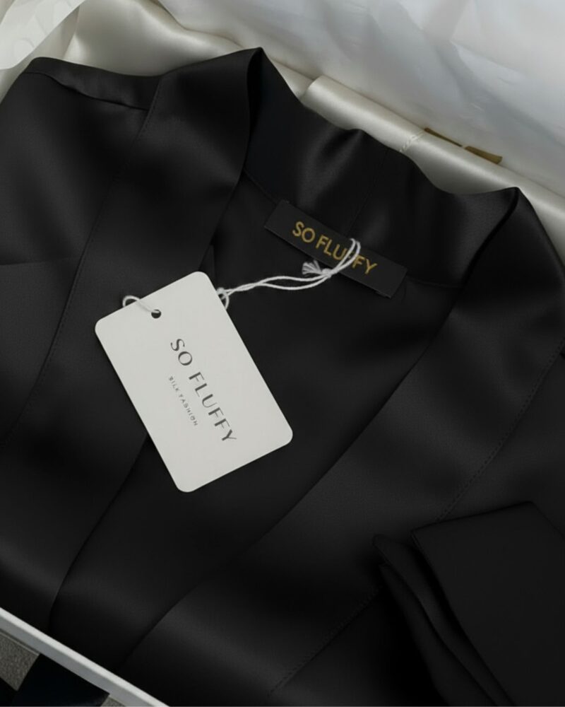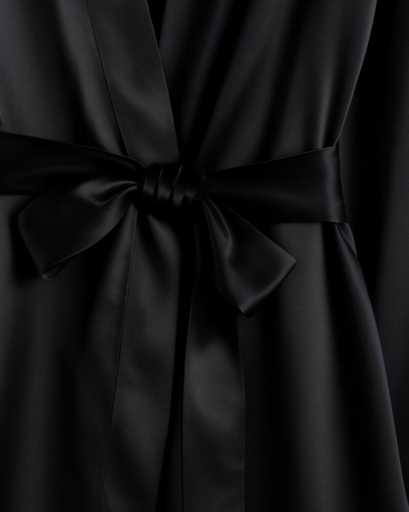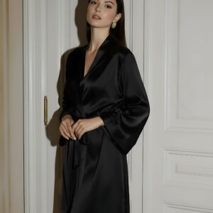 Jedwabny szlafrok o kroju typu kimono. Wykonany w 100% z wysokiej jakości jedwabiu naturalnego.