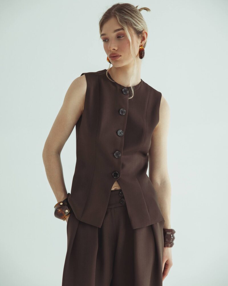 Połącz eleganckie spodnie Milano z kamizelką do kompletu, żeby stworzyć spójną i elegancką stylizację.